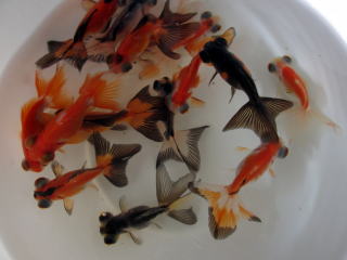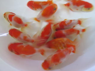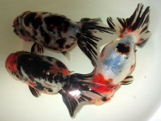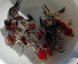 | ブロードテール 10㎝ | ブロードテール 10㎝ | 琉金 12㎝ | 三尾和金 9㎝ | ||