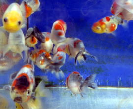 | 水泡眼 10㎝ 右と同じ | 水泡眼 10㎝ | 当才だるま琉金 7㎝ | 玉錦 7㎝ | ||